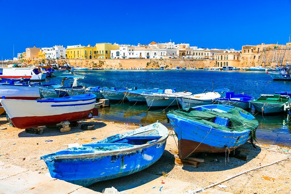 dag 6 Ontbijt inbegrepen Lunch inbegrepen Diner inbegrepen Otranto & Santa Maria di LeucaVandaag maken we een onvergetelijke mooie rit langs de kust door de hiel van de Salento. In Santa Maria di Leuca, waar ook het heiligdom Finibus Terrae (het einde van de wereld) gelegen is, kijken we uit naar de plaats waar de Adriatische en Ionische Zee samenkomen. Tijdens een panoramische boottocht langs de bijna spierwitte rotsen, die met het azuurblauwe zeewater contrasteren, bewonderen we verschillende grotten vanuit de zee. Het oude centrum van Otranto wordt door een imposante stadsmuur, die vrijwel nog intact is, omsloten. Binnen die muur heerst een fijne en rustgevende sfeer. De romaans-gotische kathedraal is één van de juweeltjes van de stad met het 15e-eeuwse rozetraam dat zo karakteristiek is voor de religieuze architectuur in Puglia.