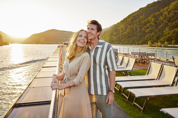 ontspannen in buitenkajuiten (15m2) en suites (24m2). De kajuiten op het Ruby dek en Diamond dek beschikken over openschuivende ramen welke van de vloer tot het plafond reiken (= Franse balkons). Hierdoor heeft u een onbeperkt zicht op de rivier, de