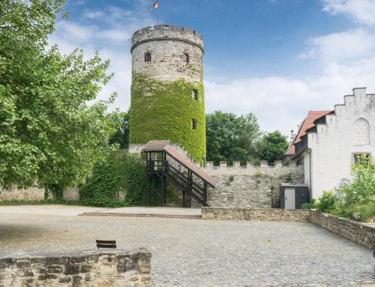De burcht van de Heren van Querfurt (11e eeuw) is maar liefst 7x groter dan de Wartburg. De romaanse delen zoals de burchtkapel en de twee torens, ‘Dikke Heinrich’ en de ‘Marteltoren’, zijn nog origineel. -