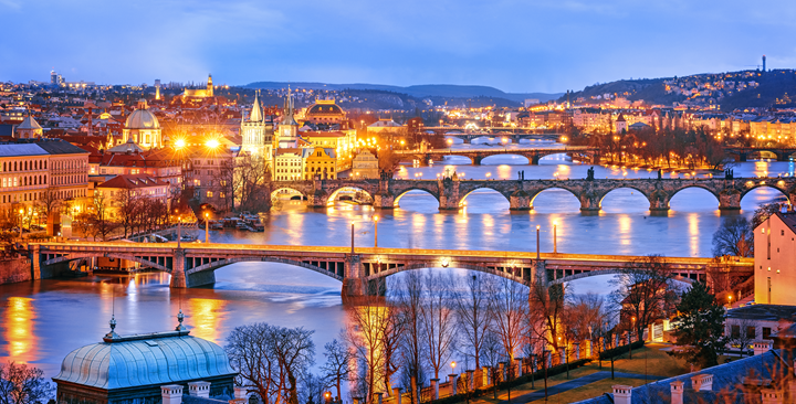 Waar kan men op Silvesteravond nog beter zijn dan in de Gouden Stad? Praag is ongetwijfeld één van de mooiste en meest levendige steden van Europa. Haar historische centrum staat op de Werelderfgoedlijst van UNESCO en de Moldau, die dwars door de stad stroomt, hult haar in een ongelooflijk romantische sfeer, die nog meer benadrukt wordt wanneer een wit sneeuwtapijt het stratenpatroon bedekt. De tijd dat Praag een stoffig, grijs verleden meesleurde en gebukt ging onder het communistische bewind behoort tot het verleden. Praag heeft zijn luister van weleer teruggevonden en is heden ten dage een kleurrijk-schitterende stad die haar naam als Gouden Stad alle eer aandoet. Praag staat ook bekend als een leider van klassieke muziek. Werken van de meest bekende nationale componisten Bedřich Smetana en Antonín Dvořák zullen schitteren tijdens het nieuwjaarsconcert in de Obecní Dům. Ook Beethoven en Mozart waren er welgekomen gasten en Mozarts muziek zal het galadiner op oudejaarsavond opvrolijken. De stemmige eindejaarssfeer in Praag wordt versterkt door de middagconcertjes door aankomende musici in vele van de talloze kerken . Uiteraard gaan we ook de rijke cultuur verkennen van de stad die eeuwenlang het centrum van het Heilig Roomse Rijk was.