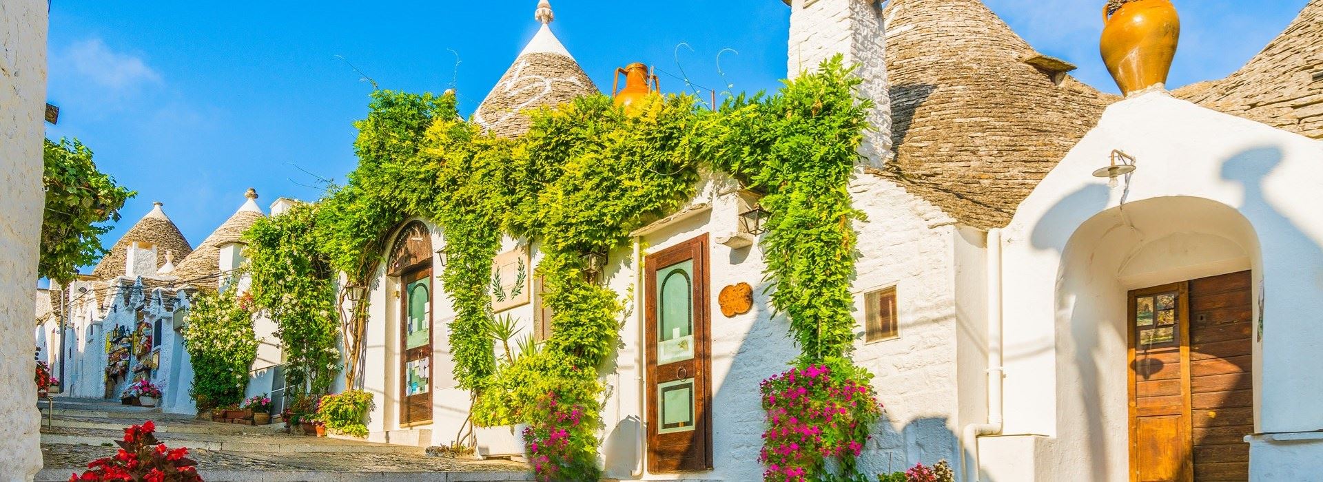 dag 1 Diner inbegrepen De trulli van AlberobelloWe vertrekken vanuit onze opstapplaatsen naar Brussel voor onze vlucht naar Bari, de levendige hoofdstad van Puglia. In de late namiddag brengt de PremiumTours TopView autocar ons naar het charmante Alberobello, de onbetwiste hoofdstad van de trulli, de typische witte, puntvormige huisjes die vaak met primitieve, magische of christelijke symbolen versierd zijn. De volgende 3 nachten verblijven we in La Chiusa di Chietri Grand Hotel 4*.