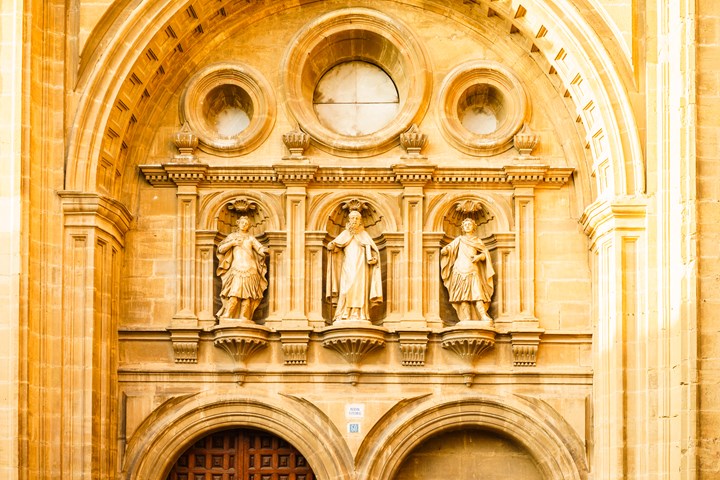 architectonische juwelen met invloeden van de Sint Jacobsroute. Het meest opvallende bouwwerk is zonder twijfel de mooie, statige, romaanse brug. Verder naar Estella, vanwaar we een schilderachtige route volgen naar Vitoria-Gasteiz. -